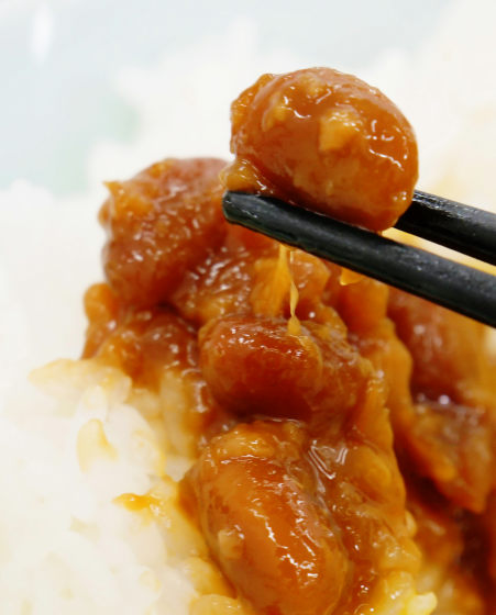 実際に食べてみたところ、かなりしょうゆの味が強く、写真の納豆/ご飯のバランスだとちょっと味が濃いめ。味付け自体はもろみ味噌のような感じですが、納豆独特のあの香りや粘り気はしっかり感じられ、まごうことなき「納豆ご飯」です。