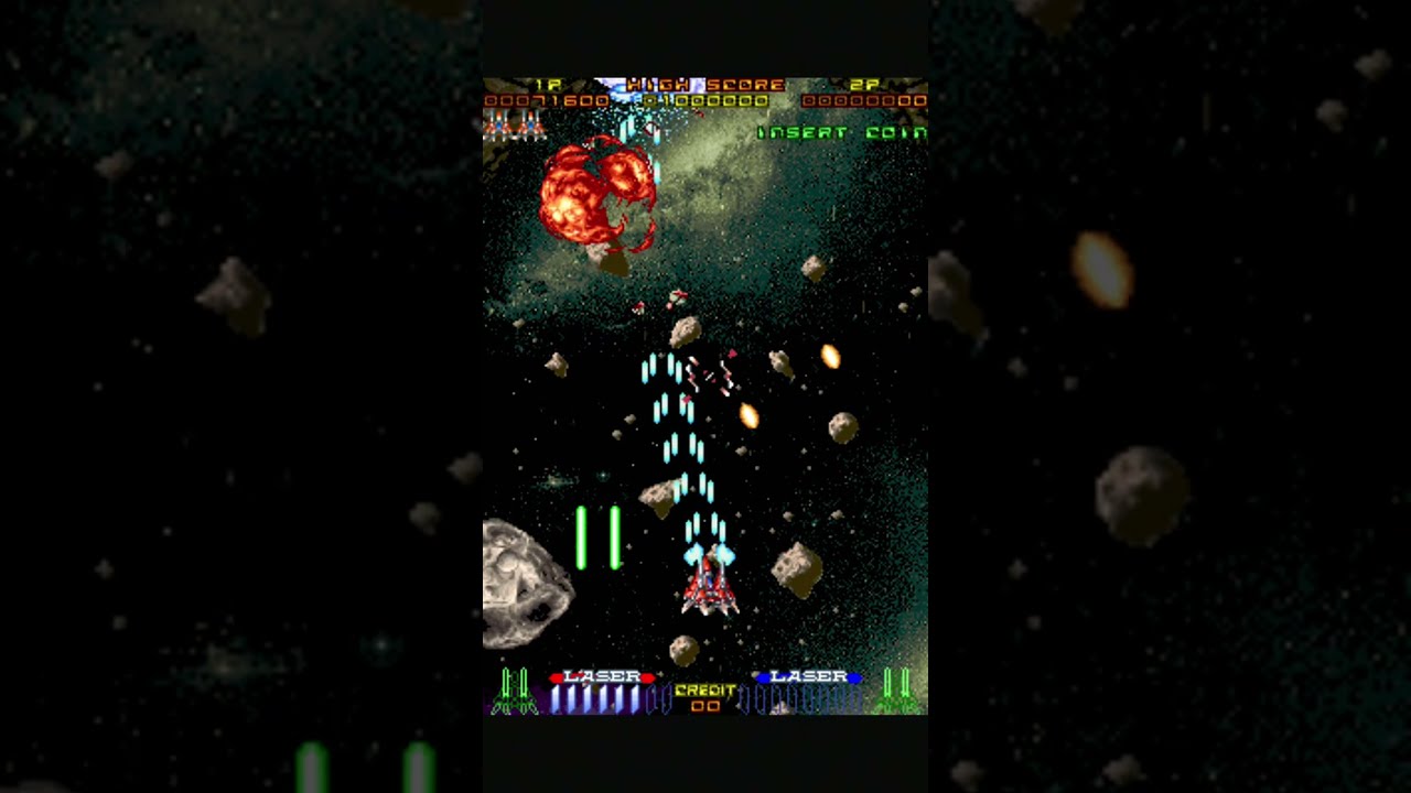 奥行きのある画面演出や、自機から弧を描いて発射されるホーミングレーザーは非常に美しく、タイトーのアーケードゲームの進化はまさにグラフィックにあることがわかります。