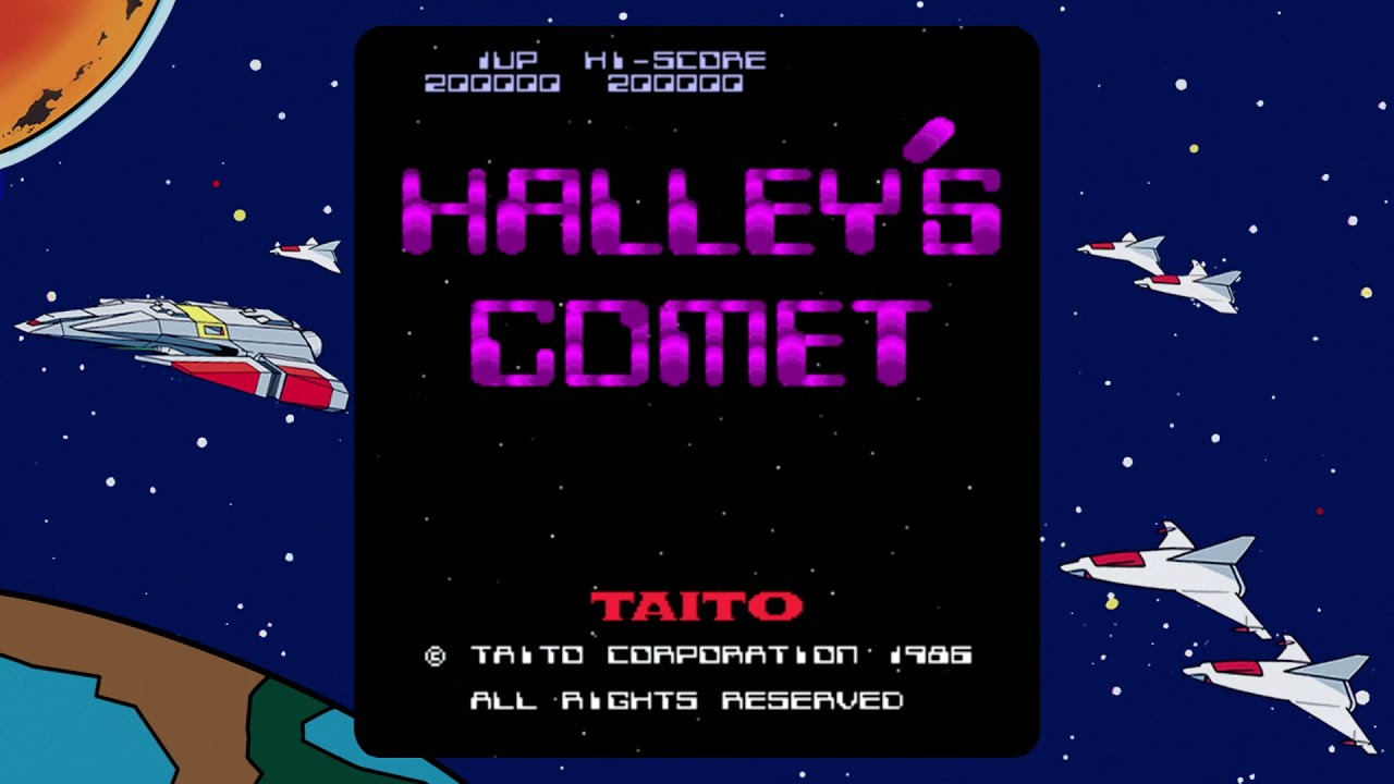 「ハレーズコメット」はハレー彗星が接近していた1986年にリリースされた縦画面シューティングゲーム。実際にどんなゲームなのかは以下のムービーを見るとよくわかります。