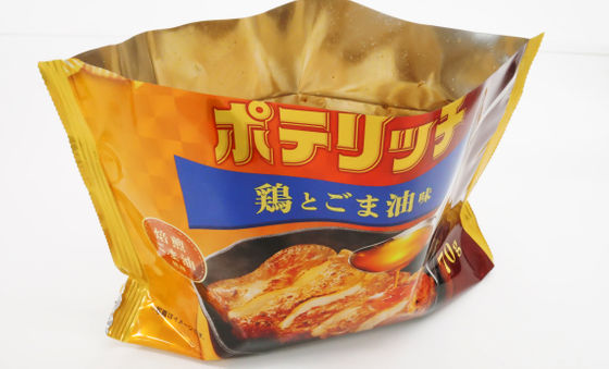 お酒のおつまみに適した大人のためのポテトチップスことカルビーの「ポテリッチ」シリーズに、「大人のポテリッチ 鶏とごま油味」が2022年3月28日(月)に登場しました。今回で第9弾になるという人気シリーズの最新味は、ポテトチップスのフレーバーとして人気のごま油に、ごま油との相性がいい「鶏肉」を合わせた一品とのこと。香ばしい焙煎(ばいせん)ごま油の風味でグリルしたような鶏肉のうまみを引き立てた厚切りポテトチップスを食べたらどんな感じか気になったので、実際に購入して食べてみました。