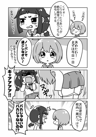 「貧乏ちゃんと金持ちゃん」2ページ目。お嬢様の「はるこ」は、ひかるに比べると感情豊かで余裕がない印象。