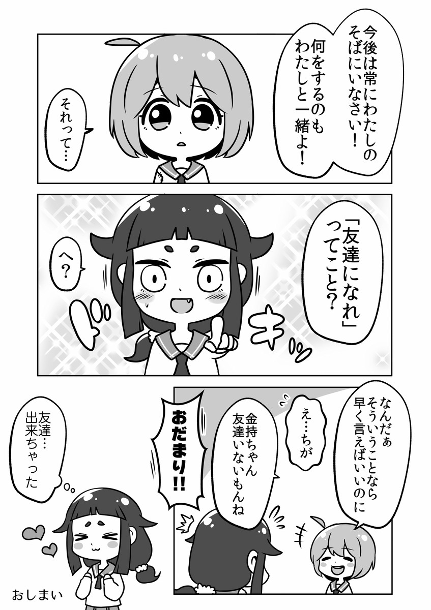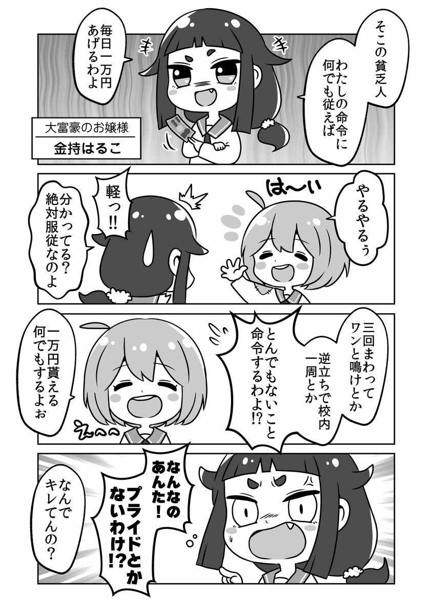 「貧乏ちゃんと金持ちゃん」2ページ目。お嬢様の「はるこ」は、ひかるに比べると感情豊かで余裕がない印象。