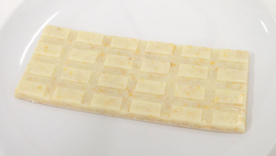 チョコレートの全体像はこんな感じ。乳白色で、ところどころ黄色い粒のようなものが混じっているのが分かります。