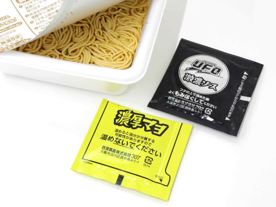 実際に食べてみると、ドロッとした味の濃いソースが口の中に広がります。濃厚なマヨネーズの影響か、口の周りがテカテカするような油っぽさを感じました。あらゆる意味で通常のU.F.O.より濃厚なので、味の濃い食べ物を求めている際にオススメです。