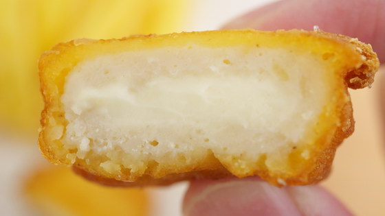 チキンナゲットを一口食べてみると、表面の衣はサクサクで、中心部分にチーズソースが入っていました。トリュフの風味とチーズの風味が口いっぱいに広がり、全体的に濃い目の味付けになっています。