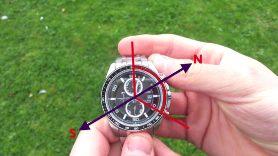 日本は北半球にあるので使う機会はあまり多くないかもしれませんが、このテクニックは少し手順を変えれば南半球でも使えます。南半球では、時針ではなく12時の文字を太陽に向けます。