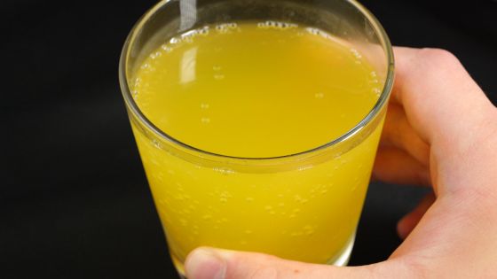 「モンスター ウルトラピーチーキーン」の色や炭酸の強さを確かめるために透明のコップに注いでみました。コップに注ぐとシュワシュワと爽快な音が鳴り響きます。