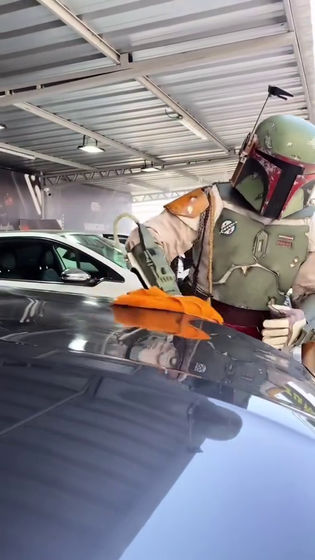 見た目は忠実にスター・ウォーズのキャラクターを再現していますが、洗車作業は丁寧に手作業で行われています。