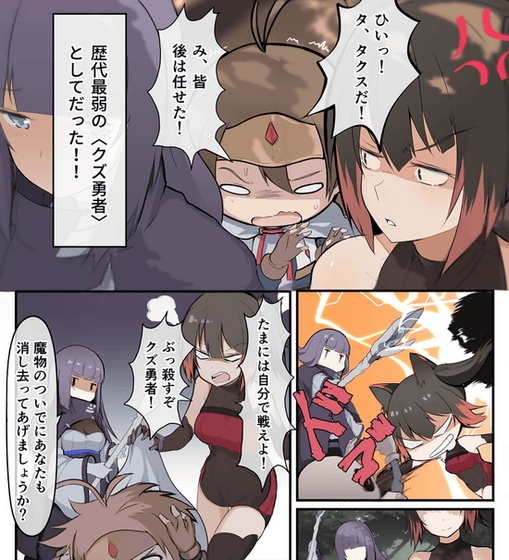 魔物との戦いが続く世界・コナムで勇者として選ばれたクズールは、「歴代最弱のクズ勇者」だと知られていました。優秀な仲間たちのおかげでなんとかやってこれたものの、クズール自身はいつまでたってもびびりでへたれなへっぽこ勇者。