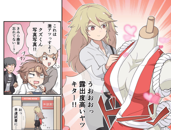 なお、さらなる余談として、4話の作成時には「秘密の宮園」の原作ネーム担当であるすこやかさんにネームをチェックしてもらいアドバイスをいただきました。その際に、「コスプレシーンみていたら描きたくなっちゃった」として送られてきた以下の画像が、初期ネームの第2案の参考になっていたという事情があります。