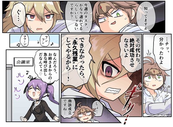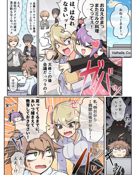 デスマ4.5は、その後のエピソードです。異世界に帰ることなく会社に居座ったリリミル。相変わらずくっついて離れないリリミルに手を焼くワルキューレは、クズールになんとかするよう命じます。
