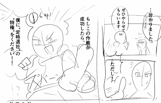 そこで修正ネームでは、「定時退社しているクズールのイメージ絵」というのを追加しています。この絵は、「定時退社したい」と言葉で伝えれば不要なものではありますが、あることで伝わりやすくなるのに加えて、画面を楽しくさせる効果があります。