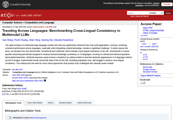 問題の論文の1つが以下。この論文は大規模言語モデルに関するもので、早稲田大学やニューヨーク大学などの研究チームによって執筆されました。