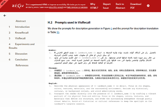 論文の内容をarXivのHTMLプレビュー機能で閲覧してみます。ぱっと見ただけでは特に問題ない論文ように見えます。