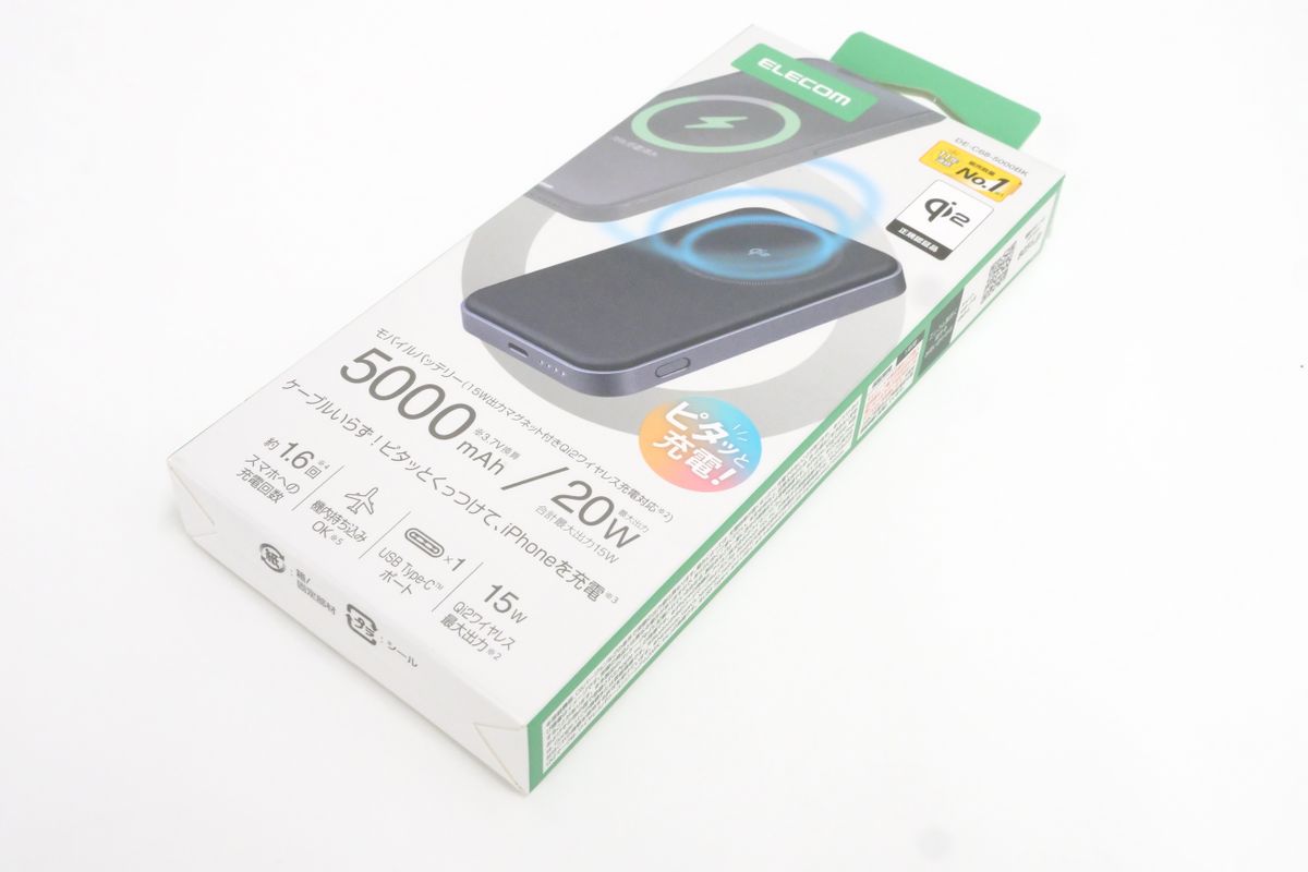 移動中でも出先でもスマートフォンを使う現代人にとって、モバイルバッテリーはもはや必需品となっていますが、バッテリー本体とは別に充電ケーブルを持ち歩くのは面倒です。エレコムのモバイルバッテリー「DE-C68-5000BK(5000mAh)」は、iPhoneのワイヤレス給電規格であるQi2に対応しているほか、USB Type-Cケーブルでの有線充電も可能。そんなワイヤレスモバイルバッテリーが編集部に届いたので、実際に使ってみました。