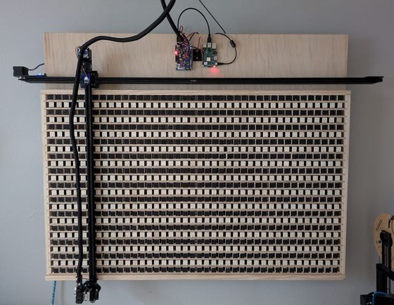 ホルメン氏は約6年前に、「誰でも操作できるウェブインターフェースを備えた、大きくて非効率なディスプレイを作る」というアイデアを思いつきました。最終的に40×25のグリッド状に並んだピクセルを単一の機構で1個ずつ回転させるという、世界で最も非実用的なディスプレイの構想にたどり着いたとのこと。