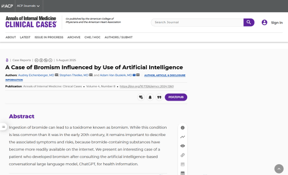 A Case of Bromism Influenced by Use of Artificial Intelligence | Annals of Internal Medicine: Clinical Cases