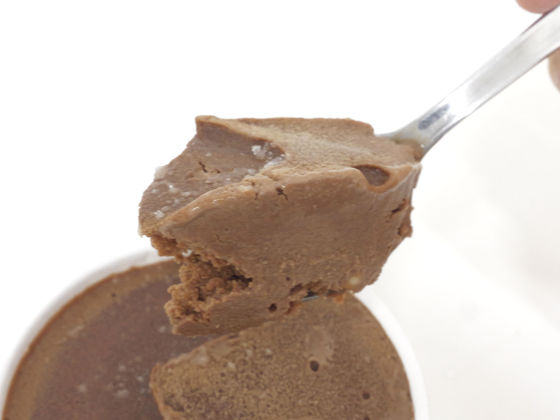 「甘い」と「苦い」の中間、「もう少しで『苦み』に変わる」と言えるくらいのギリギリの甘さなチョコレートアイスで、味も香りも濃厚。豆乳ベースのアイスだそうですが、全く気づかず。