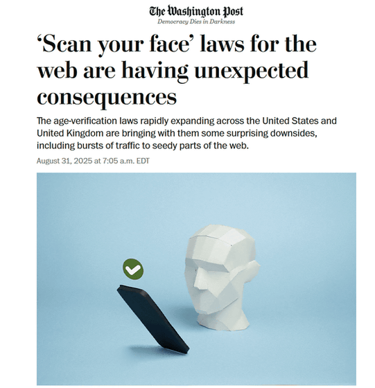イギリスで2023年に成立し段階的に施行されている「オンライン安全法」では、ポルノサイトを始めとした未成年が触れる可能性のある不適切なコンテンツにおいて、顔認識や銀行情報などでユーザーの年齢を確認することが義務付けられています。オンライン安全法に基づく年齢確認により、VPNサービスの利用者が10倍以上増加したほか、「年齢確認のルールを順守したサイトはトラフィックが減少し、無視したサイトはアクセスが急増する」という事態になっていることが報じられています。