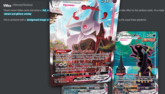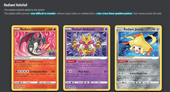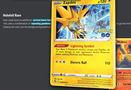 ポケモンカードのキラキラ光るホログラフィック効果をCSSで再現したサイトが登場