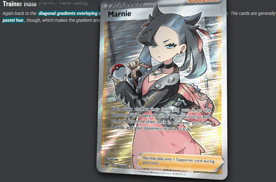 カードゲームのレアカードには、見る角度を変えると光り方が変わったり独特の質感があったりするものがあるため、カードの「レア感」は、デジタル上ではその魅力を十分に伝えることが難しいもの。ウェブ開発者のサイモン・ゲルナー氏は、ポケモンカードの高レアリティカードの光り方や質感をCSSで再現した様子をサイトで公開し、詳細をGitHubで共有しています。