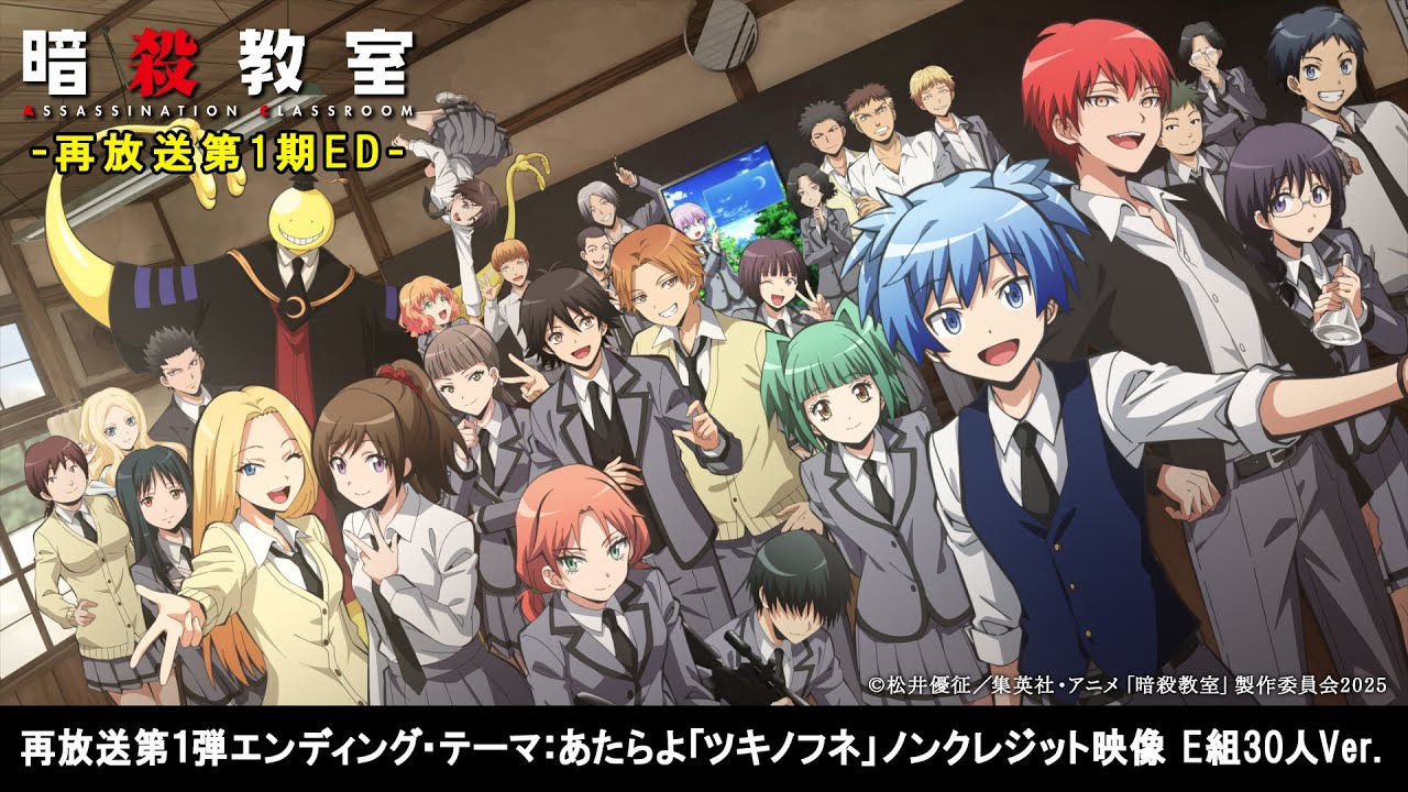 TVアニメ『暗殺教室』第1期再放送ノンクレジット・ED映像 E組30人Ver.│♪新エンディング・テーマ:あたらよ「ツキノフネ」 - YouTube