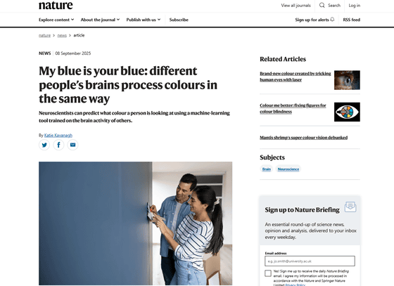「赤」や「青」といった色は人によって同じように見えているのか、という問いは人の認識に関する哲学や科学で古くから議論されています。ドイツの研究者らが2025年9月8日に発表した研究では、他人の脳活動から「何色を見ているのか」の分析を試みることで、人間が色を見たときの脳の反応パターンに共通性があるかどうか検証した結果が示されました。