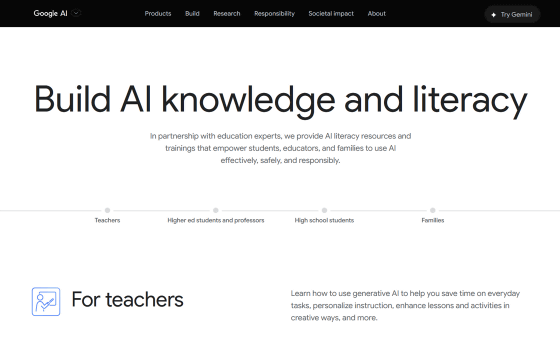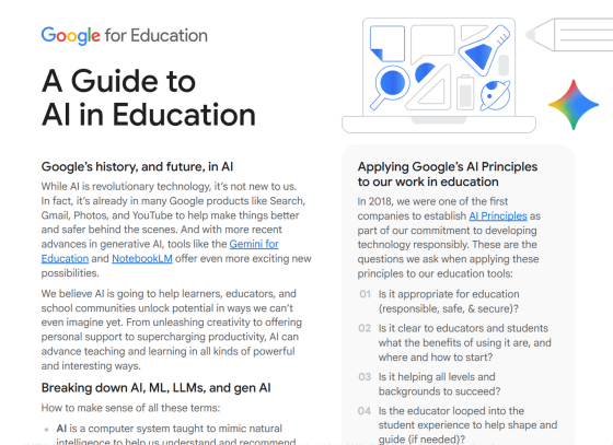 さまざまなAIサービスを展開しているGoogleが、教育者や学生、親がAIを効果的かつ安全に、そして責任を持って使用できるようにするために役立つリテラシー情報や、トレーニングツールをまとめたウェブサイトを公開しました。