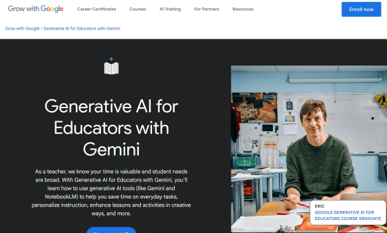 「Generative AI for Educators with Gemini」は、生成AIを用いて教師の業務を改善する方法についてレクチャーする無料のコースです。教師はGeminiを使って、日々の業務にかかる時間を節約したり、生徒ごとにパーソナライズした指導を実現したり、創造的な方法で授業やアクティビティを充実させたりできるとのこと。