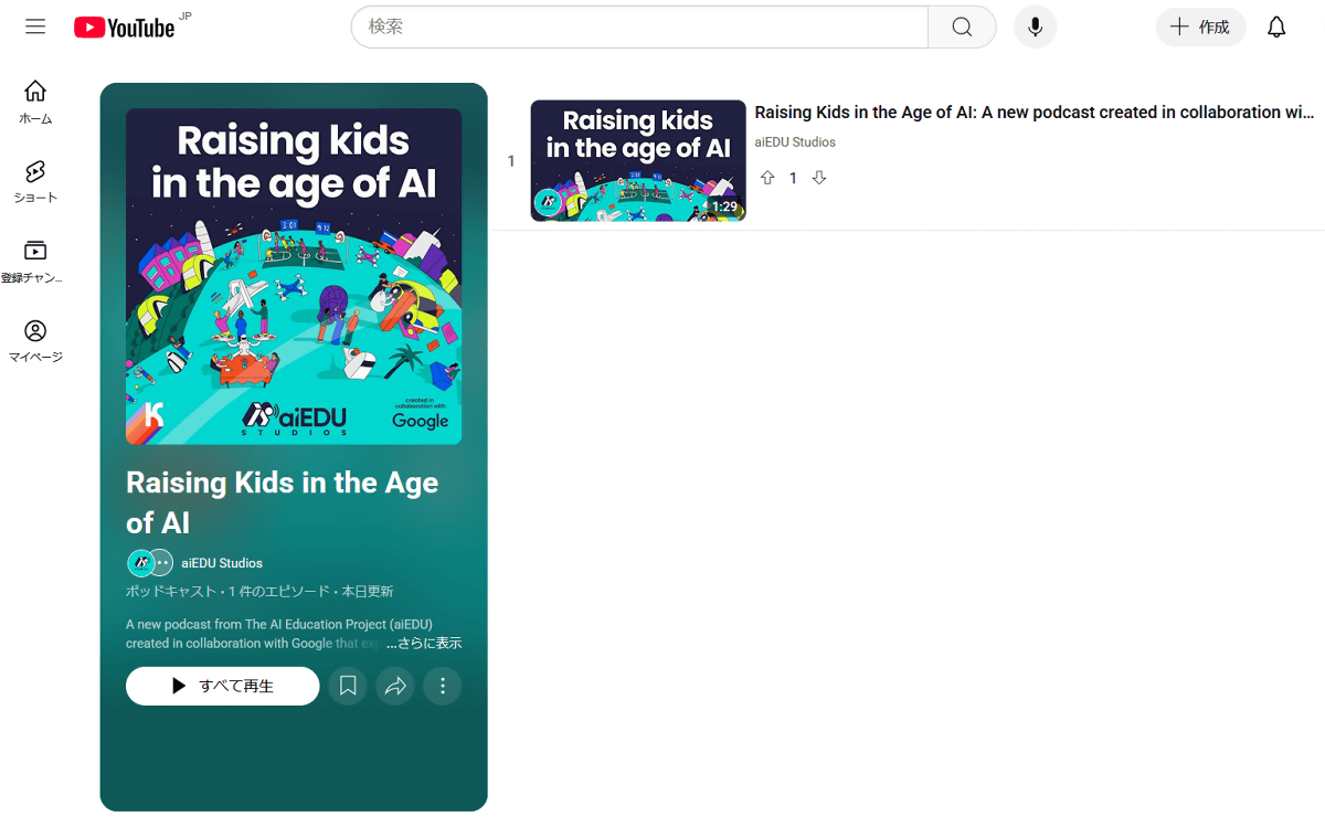 「Raising kids in the age of AI」はAIリテラシーの学習環境を提供する非営利団体のAI Education Project (aiEDU)とGoogleが共同制作したポッドキャストコンテンツです。AIが学習と教育の未来をどのように向上させるかについて、専門家の視点から解説するとのことで、2025年9月25日からエピソードが配信されるとのことです。
