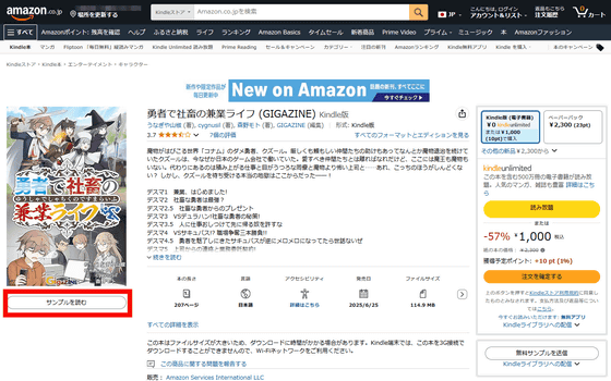 Amazonの電子書籍「Kindle」のストアでは、無料サンプルをKindleアプリやKindle端末に送ることができるほか、「サンプルを読む」をクリックしてブラウザから試し読みをすることができます。