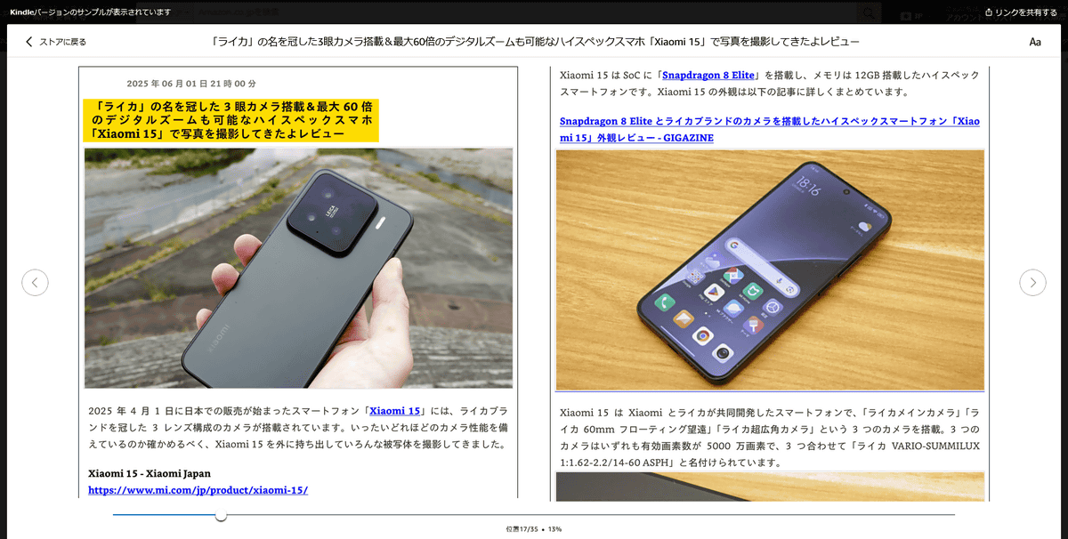 GIGAZINEでは、AmazonのKindleストアでマンガや作品集などのほか、GIGAZINEの記事を電子書籍化してリリースしています。GIGAZINE記事の電子書籍は2022年頃からリリースしていますが、初期にAmazonのストアで「試し読み」をするとレイアウトが崩れるという問題が発生。原因が不明のまま解決まで時間がかかりましたが、現在は試し読みが正常に戻っているため、経緯をまとめてみました。