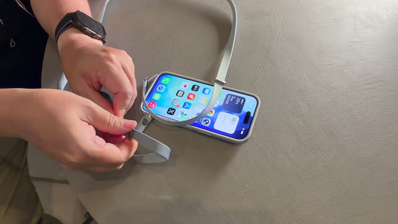 「iPhone Airバンパー」と「クロスボディストラップ」の利用イメージ - YouTube
