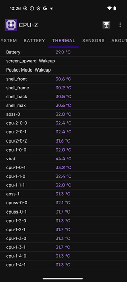 CPU-Zで内部温度を確認すると、だいたい30度前後でした