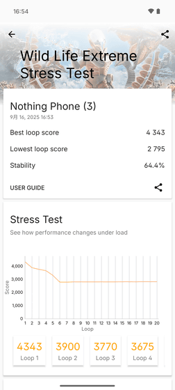 「3DMark — The Gamer's Benchmark」で、20分間にわたって「Wild Life」ベンチマークを回し続ける「Wild Life Extreme Stress Test」を行ってみました。