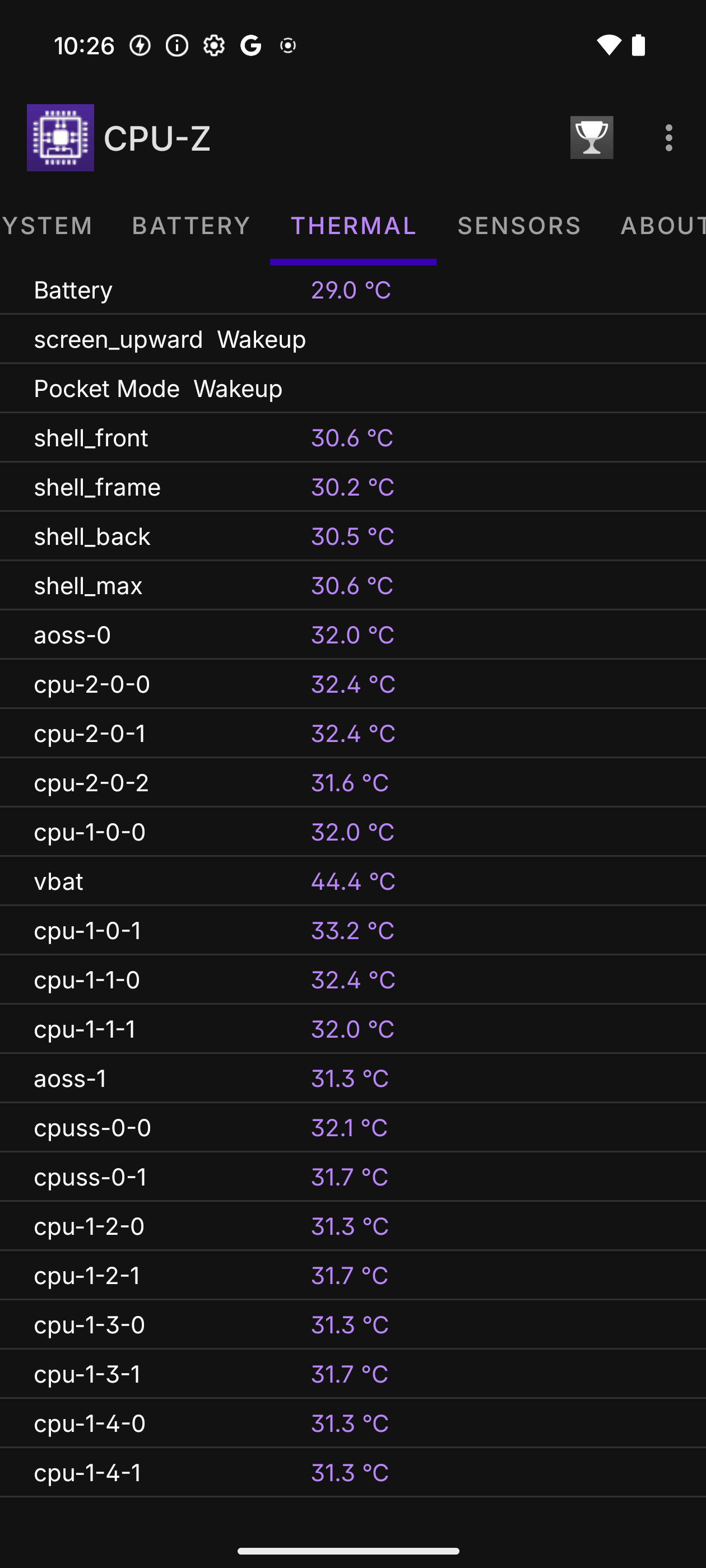 CPU-Zで内部温度を確認すると、だいたい30度前後でした