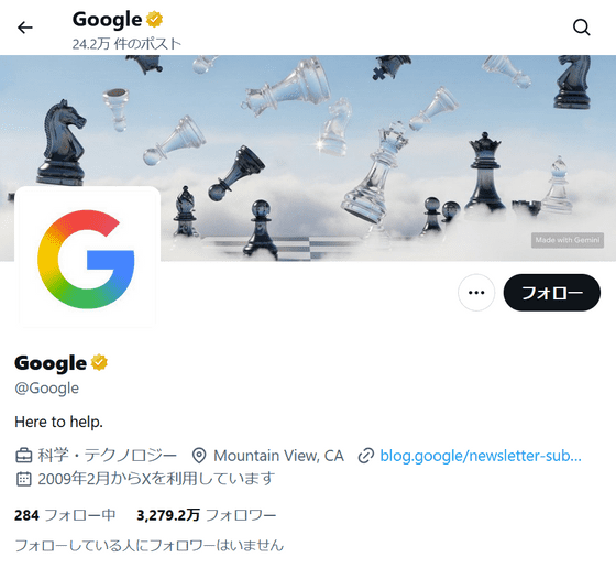 GoogleのX(旧Twitter)アカウントのプロフィール画像も新しいアイコンに変わっています。