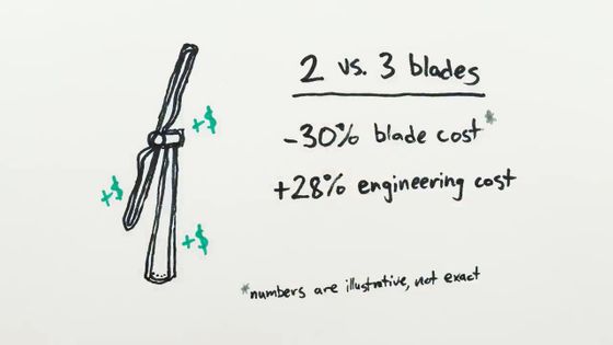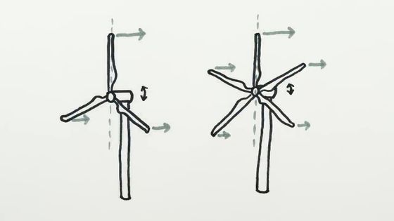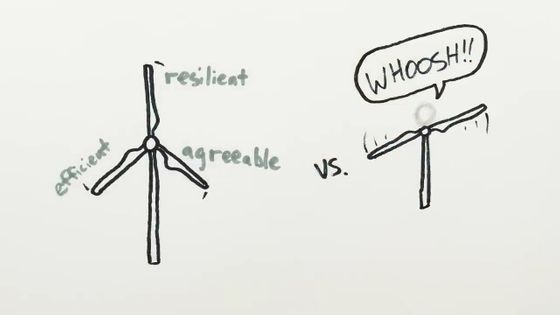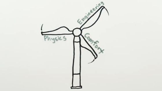 風力発電では風力タービン(風力原動機)という装置を用いて風力を電気に変換しており、そのタービンのブレードは「3枚」であることがほとんどです。一体なぜ風力発電のタービンには3枚のブレードが使われているのかについて、物理学系YouTubeチャンネルのminutephysicsが解説しました。