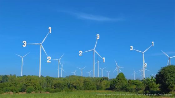 風力発電では風力タービン(風力原動機)という装置を用いて風力を電気に変換しており、そのタービンのブレードは「3枚」であることがほとんどです。一体なぜ風力発電のタービンには3枚のブレードが使われているのかについて、物理学系YouTubeチャンネルのminutephysicsが解説しました。