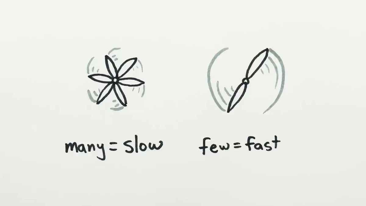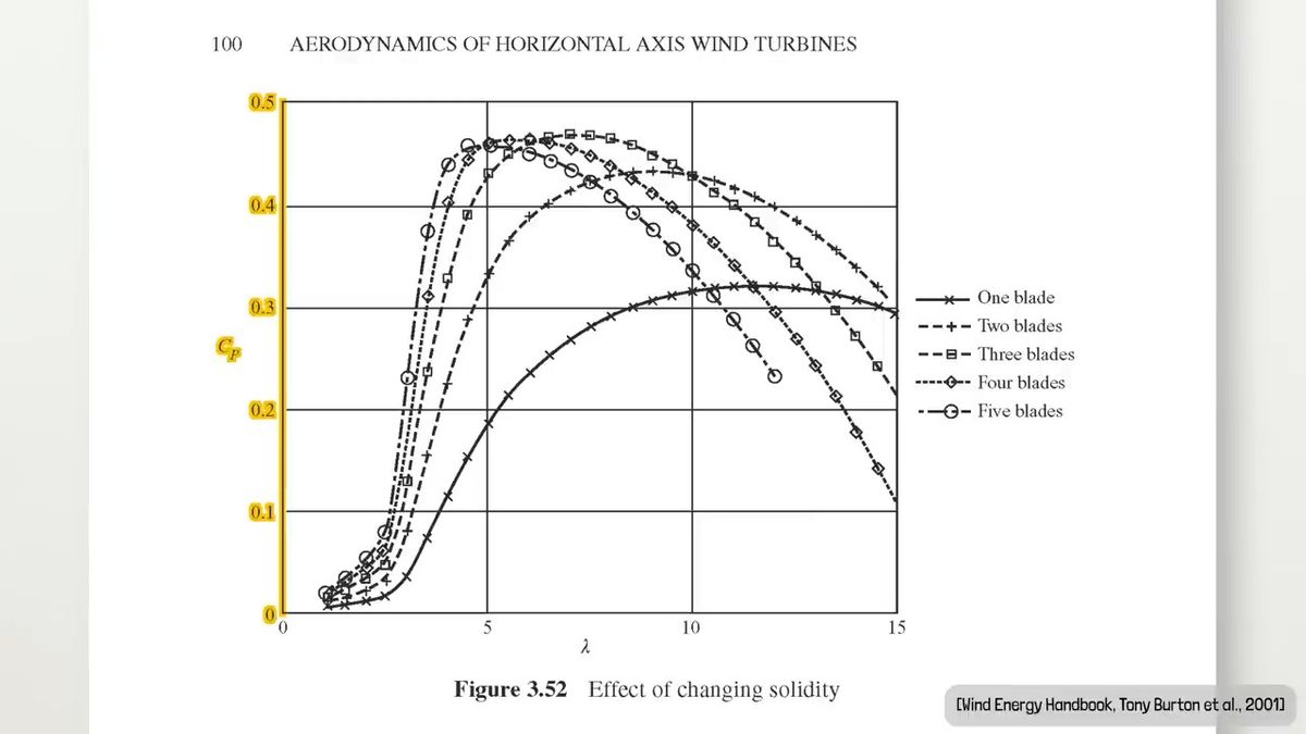 よって、多くのブレードを持つタービンは一般的に、風速に比べて回転速度が遅いほど効率的に機能します。反対に、ブレードの少ないタービンは回転速度が速いほど効率よく動作するとのこと。