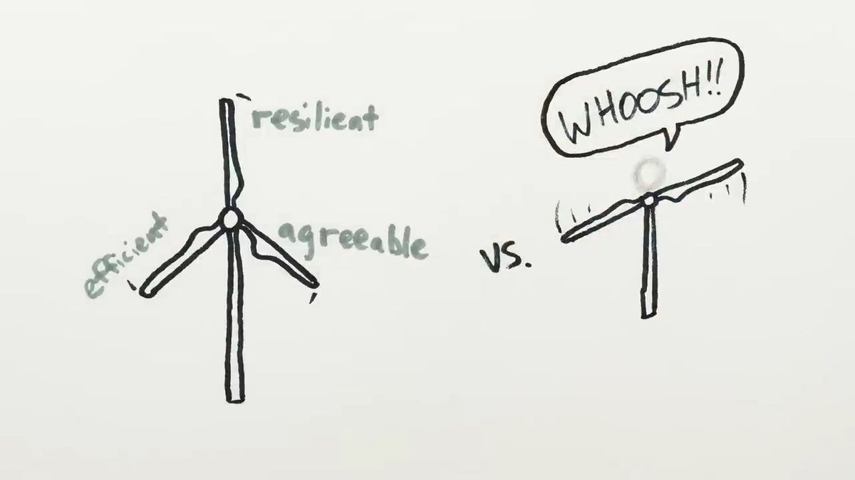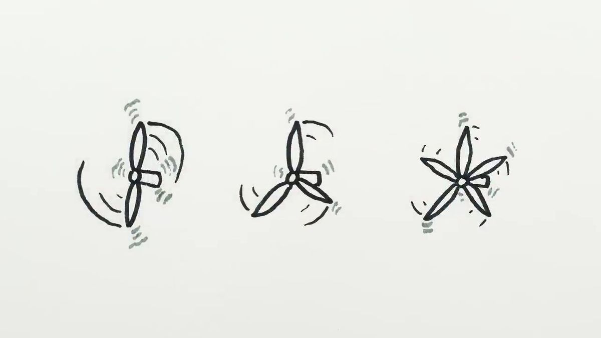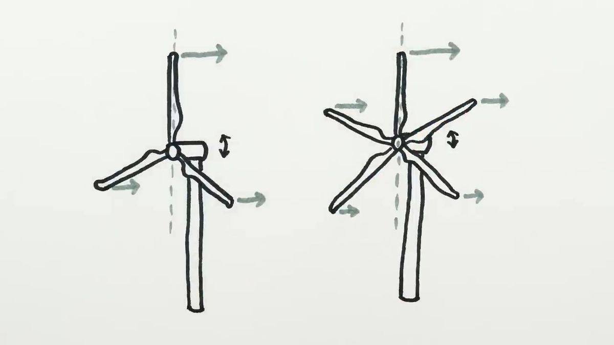 つまり、風による望ましくない力を軽減するにはブレードが奇数枚の方がよく、さらにブレードが多いほどコストも高くなるため、ブレードが3枚のタービンが工学的に最も優れているというわけです。