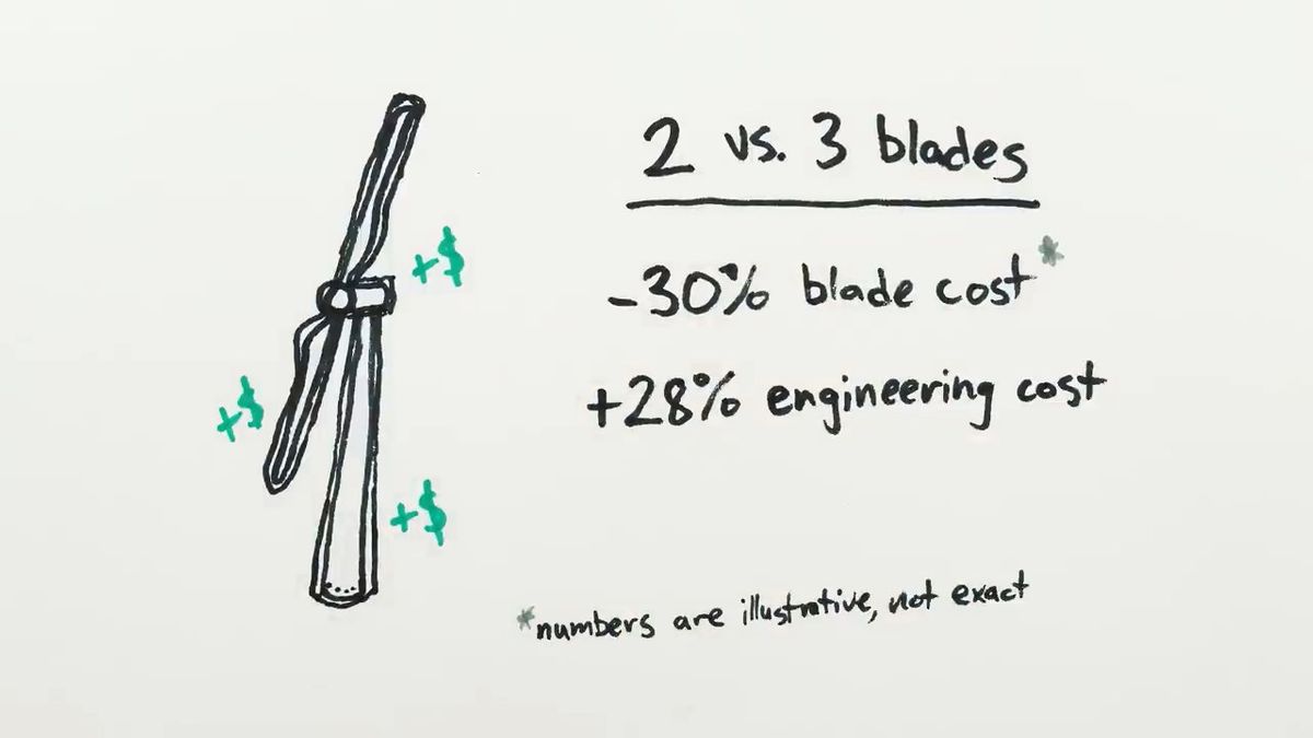 ブレードが2枚の場合でも、ポールやハブ、ブレードの材質や設計をより堅固にすれば不均衡な力に対処できますが、これには追加のコストがかかります。これは、ブレードの枚数を減らすことで得られるコスト上のメリットを相殺してしまいます。
