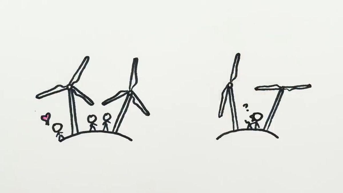 風力発電所を建設する際には、近隣住民の理解を得ることが必要です。したがって、タービンの見た目と音も大事な要素となります。