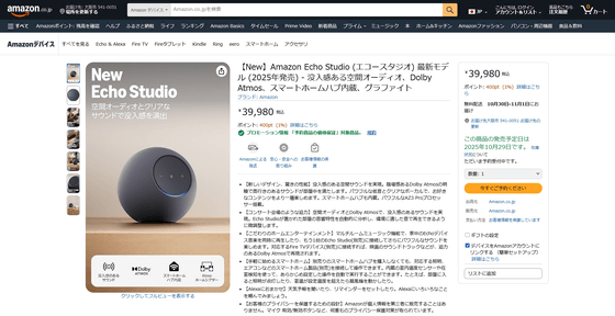「Echo Studio」は税込3万9980円で、2025年10月29日発売予定です。