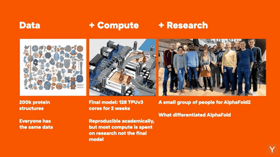 その上で、AlphaFoldをより優れたものにした非常に重要な要因として、ジャンパー氏は2点を挙げました。1つはAlphaFoldのコードをオープンソース化することです。ジャンパー氏によると、専門家が使うためのコードをリリースした場合と、データベース形式で広く公開した場合では、社会への影響力が大きく違ったそうです。ジャンパー氏は「『正しい問題を解くための正しいツール』を作ると、他の研究者の人生や仕事に大きな影響を与えます。Google DeepMindが直接関与してなくても、ツールを公開することで、科学的イノベーションの触媒になることができます。そして、私たちが予想もしていなかったような素晴らしい発見も、いくつも生まれています。単に専門家向けにコードを公開するよりも、データベース形式で広くアクセス可能にする方が、社会学的・科学的インパクトが大きくなります」と語りました。