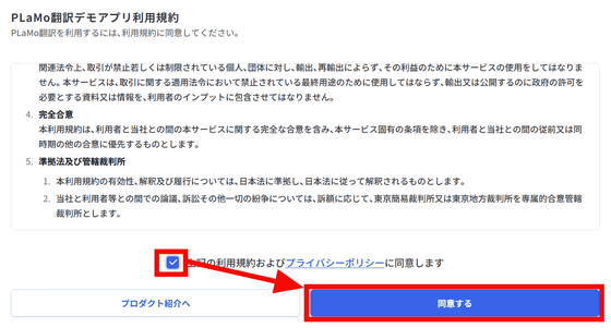 Googleアカウントでログインしたら、利用規約を確認してチェックを入れたら「同意する」をクリック。