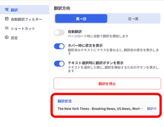 ホワイトリストに追加されました。これにより、よく訪問する外国語のページについて、開くたびに自動で翻訳を開始することができます。