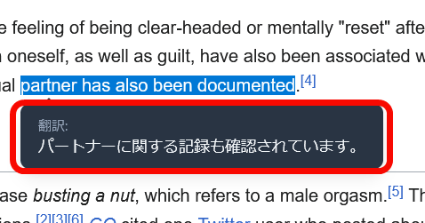 翻訳された文章は、マウスオンすると原文を表示することができます。ページの自動翻訳を使っていると、明らかに翻訳がおかしいと気付いた際に、「ページ翻訳をオフにして、原文を確認して、再度翻訳後を確認する」と見比べることがありますが、PLaMo Translateではマウスオンするだけで原文と見比べることができるのはかなり便利です。