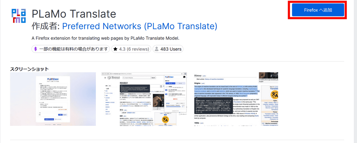 PLaMo Translate – 🦊 Firefox (ja) 向け拡張機能を入手