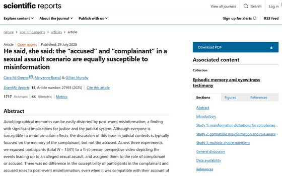 He said, she said: the “accused” and “complainant” in a sexual assault scenario are equally susceptible to misinformation | Scientific Reports